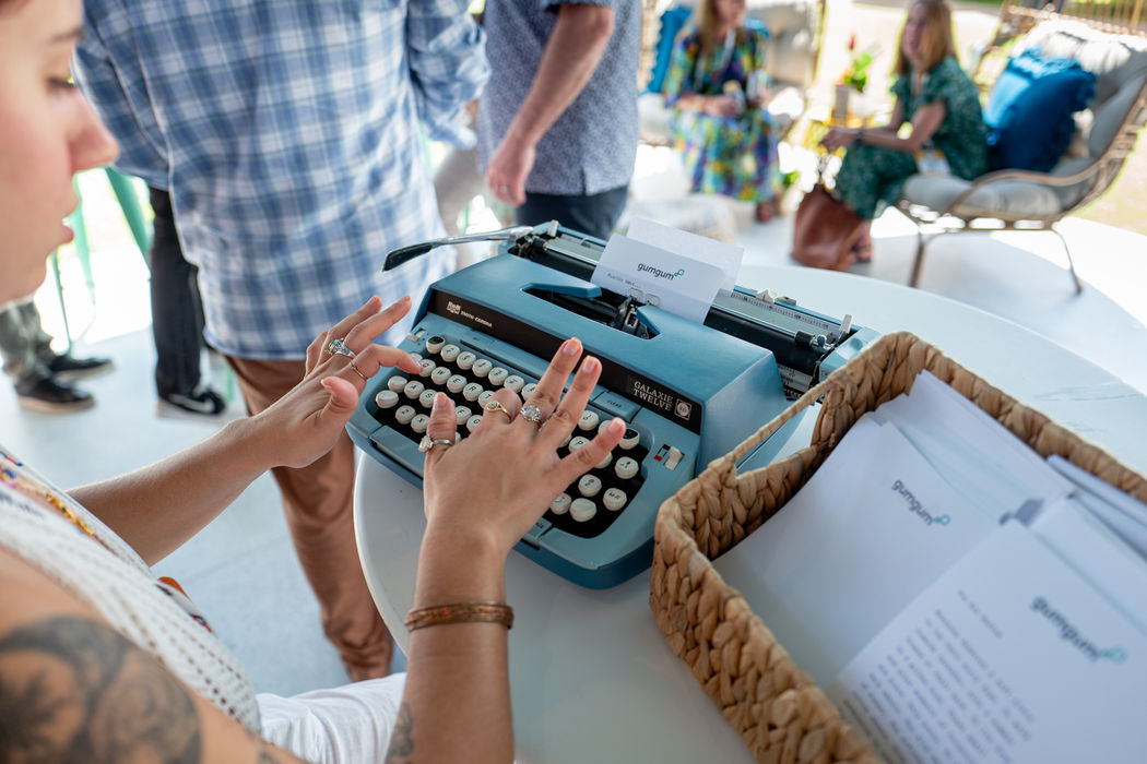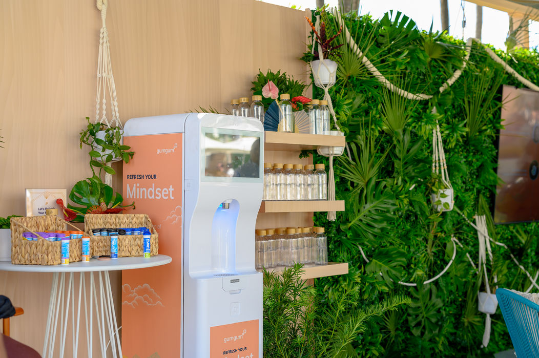 20x40 sponsorship booth at the POSSIBLE Conference in Miami, featuring a relaxed lounge environment, a customizable water station, and an amenity swag shop. Pop-up activations like breath work, hand massages, typewriter poetry, and expresso martini happy hour ensured each event day felt refreshed and unique.